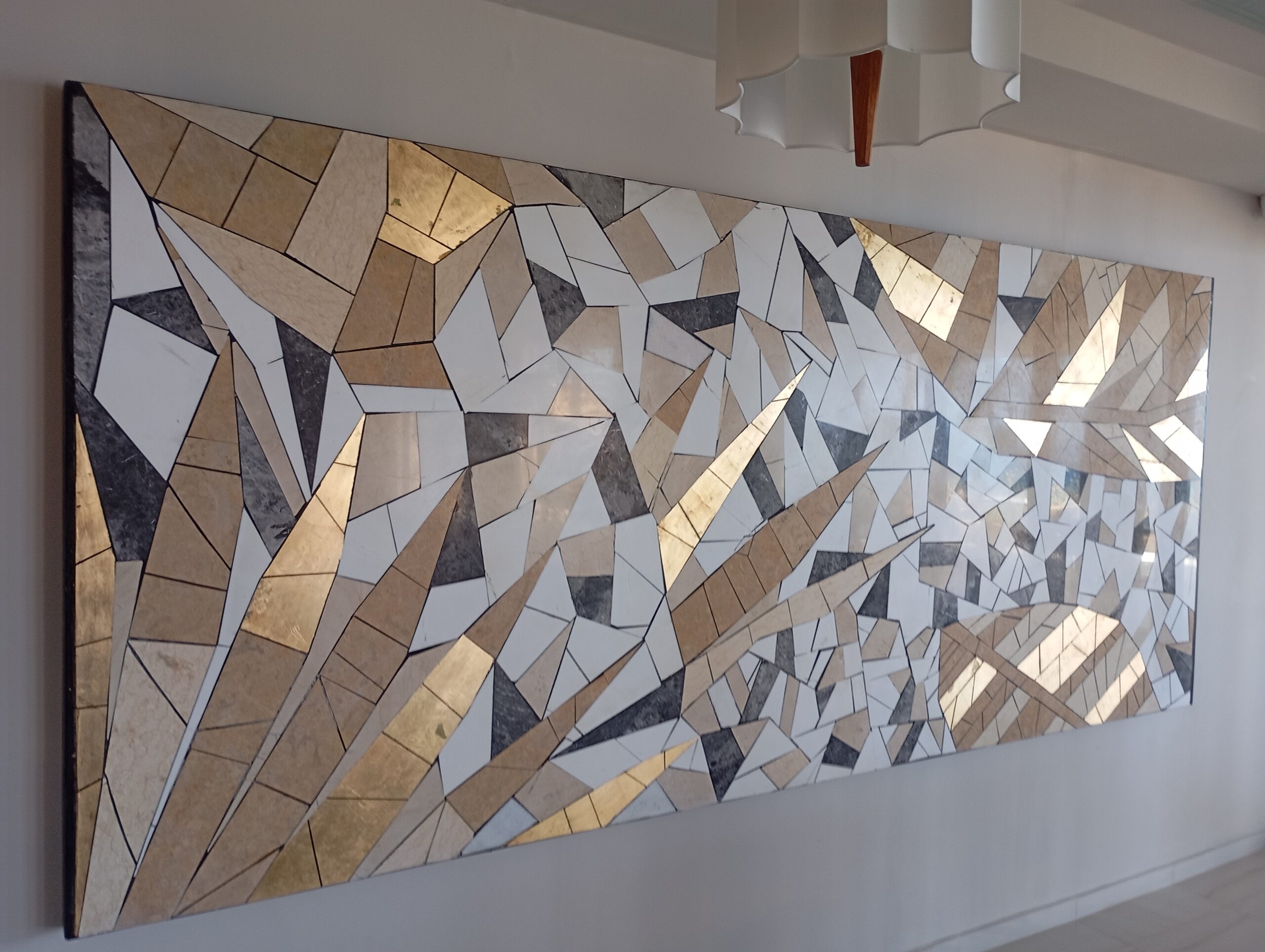 Με κυρίαρχα υλικά τις φωτοπερατές μαρμαροψηφίδες και έγχρωμες ψηφίδες υάλου δημιουργήσαμε ένα καινοτόμο υλικό για διακόσμηση και φωτισμό. Μία ιδιαίτερη πρόταση διακόσμησης που αξιοποιείται και ως πρωτότυπη ιδέα για διαχωρισμό ενιαίων χώρων.